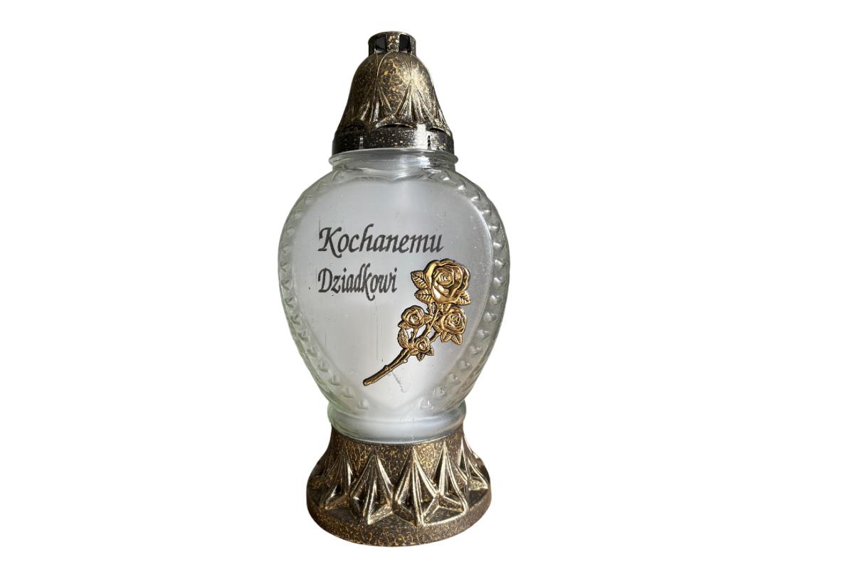 Napis na zniczu: Kochanemu Dziadkowi