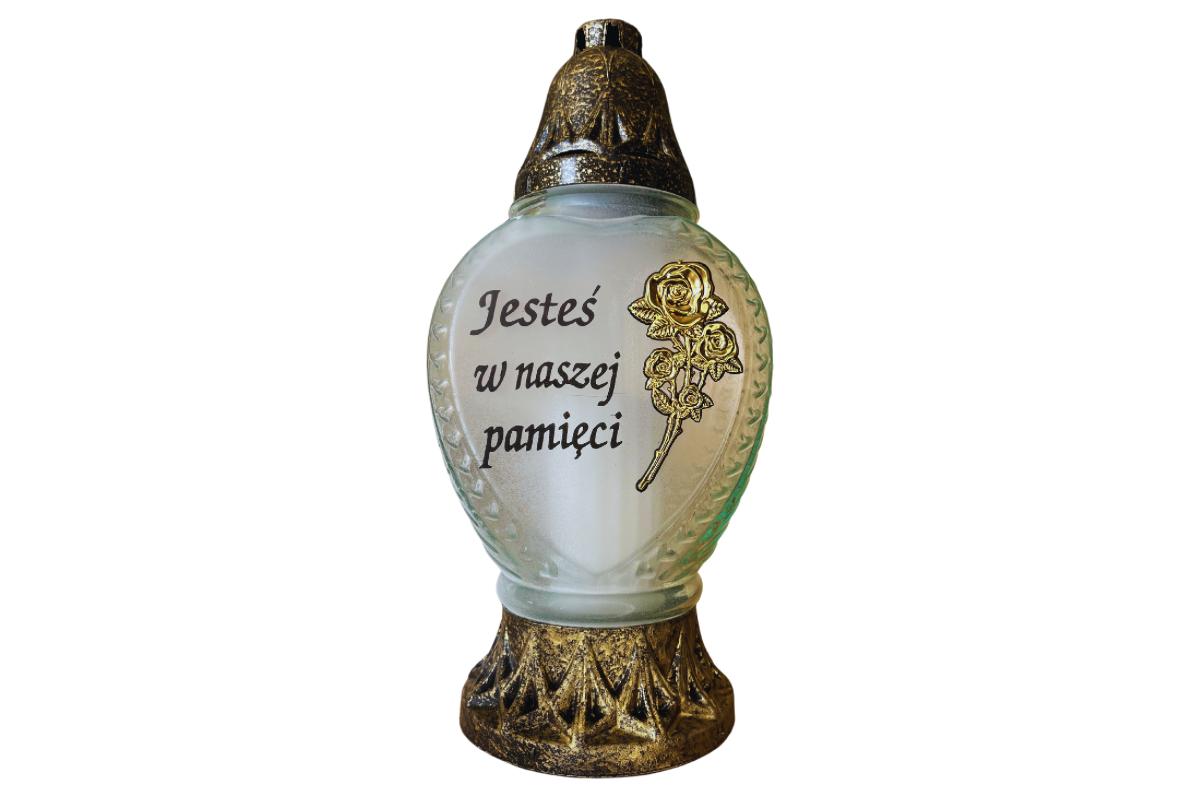 Napis na zniczu: Jesteś w naszej pamięci