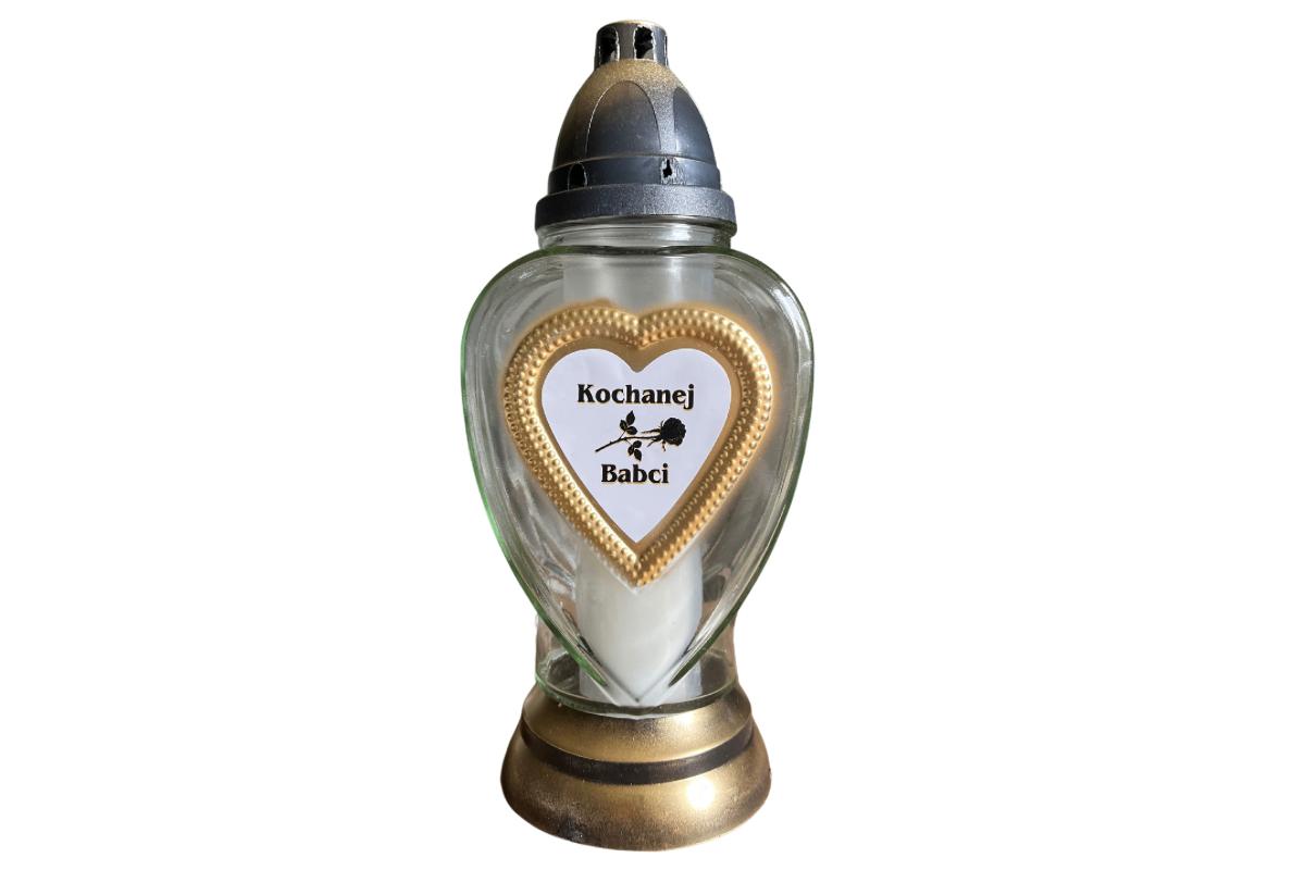 Napis na zniczu: Kochanej Babci